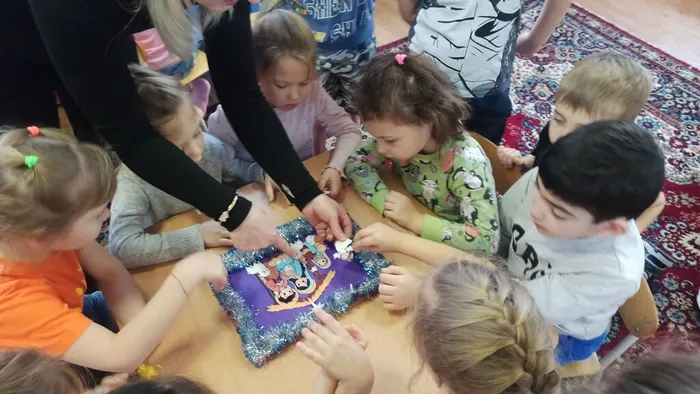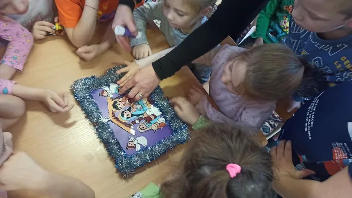Особое внимание было уделено мультфильмам, ведь именно через яркие образы легче всего передать детям важные истины. Просмотр мультфильма «История Иисуса» стал прекрасным дополнением к познавательной части программы. А после просмотра дети принялись за творчество — создание красивой аппликации «Рождество», символизирующей рождение младенца-Христа.